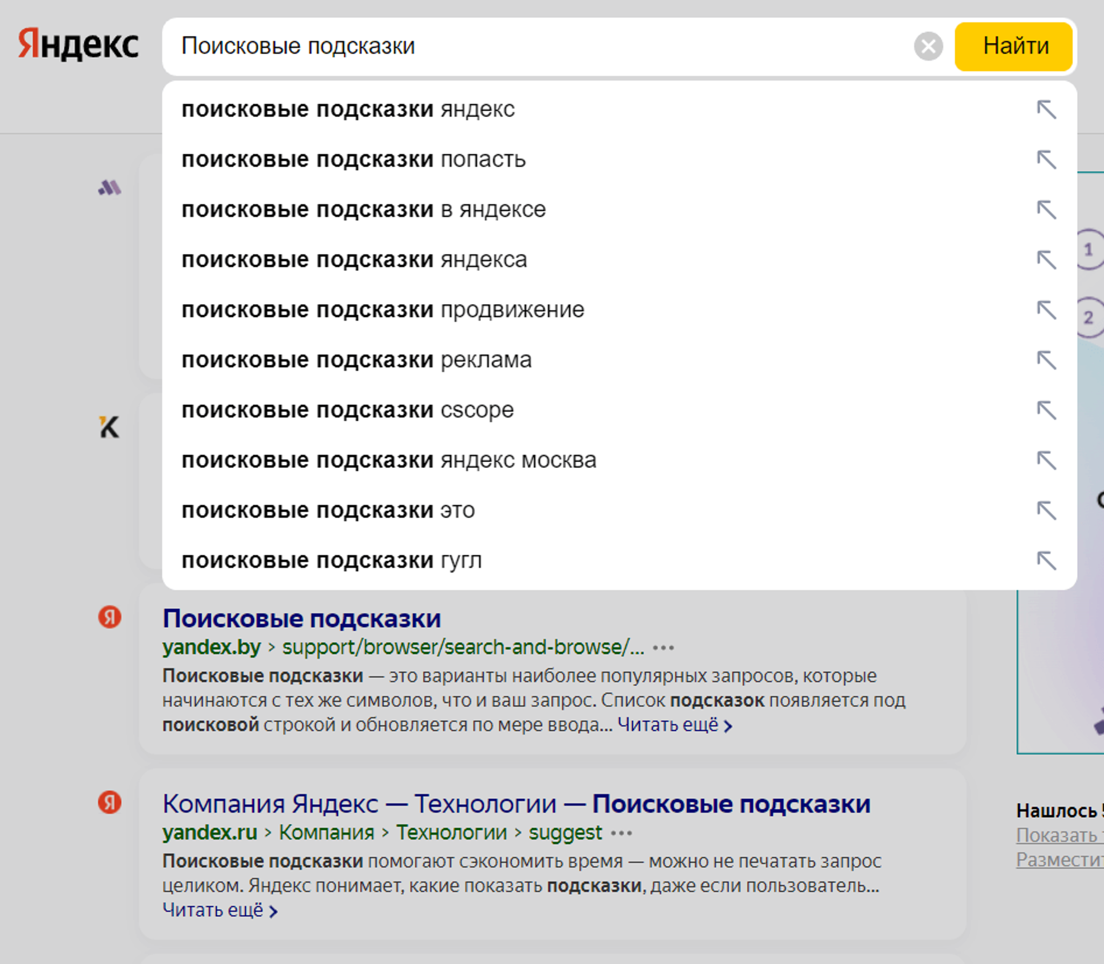 Как формируются поисковые подсказки?